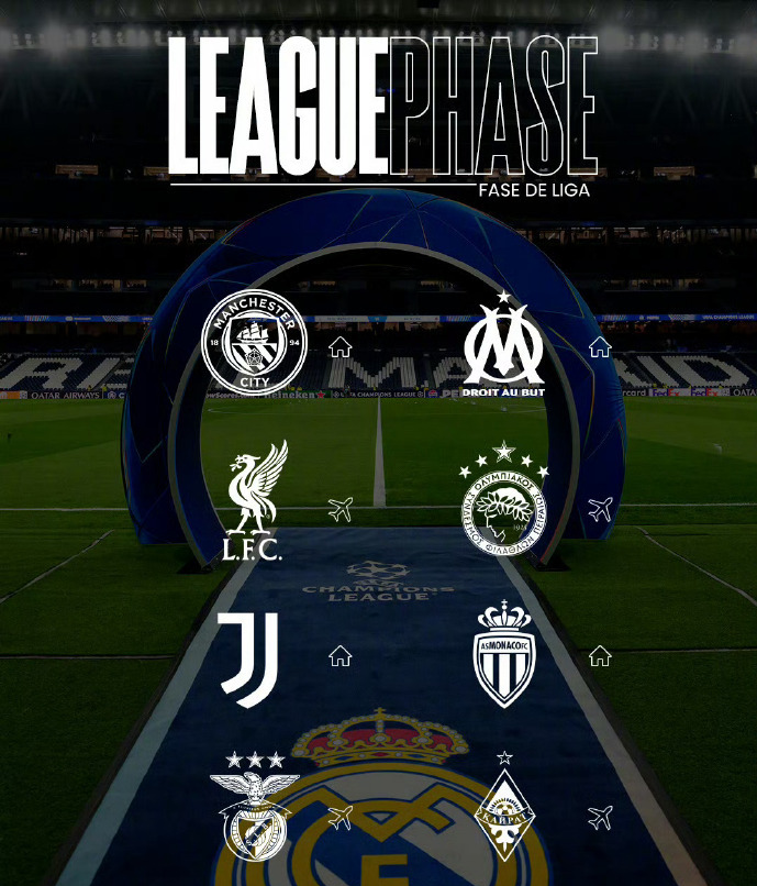 北京时间8月29日,2025-2026赛季欧冠联赛阶段抽签揭晓,来自哈萨克斯坦的欧冠新军8个对手分别是皇家马德里(主)、国际米兰(客)、布鲁日(主)、阿森纳(客)、奥林匹亚科斯(主)、葡萄牙体育(客)、帕福斯(主)、哥本哈根(客)。