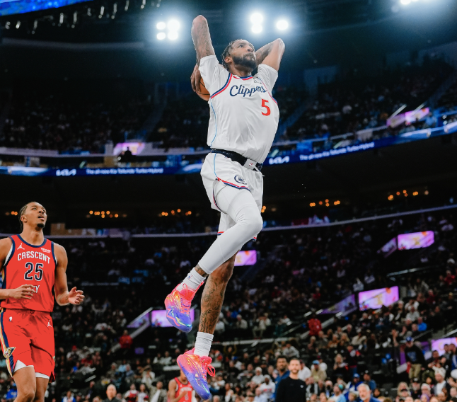 首节比赛,科林斯上来连续扣篮得手,快船也占据场上主动,大洛佩斯和邓恩三分命中,小琼斯反击暴扣取得18-8领先,鹈鹕随后拿分止血,小琼斯三分命中,伦纳德突破打成2+1,随后反击扣篮得手,快船进一步拉开分差,费尔斯上来内突外投连续拿分止血,尼德豪泽最后两罚全中,首节快船43-32领先。